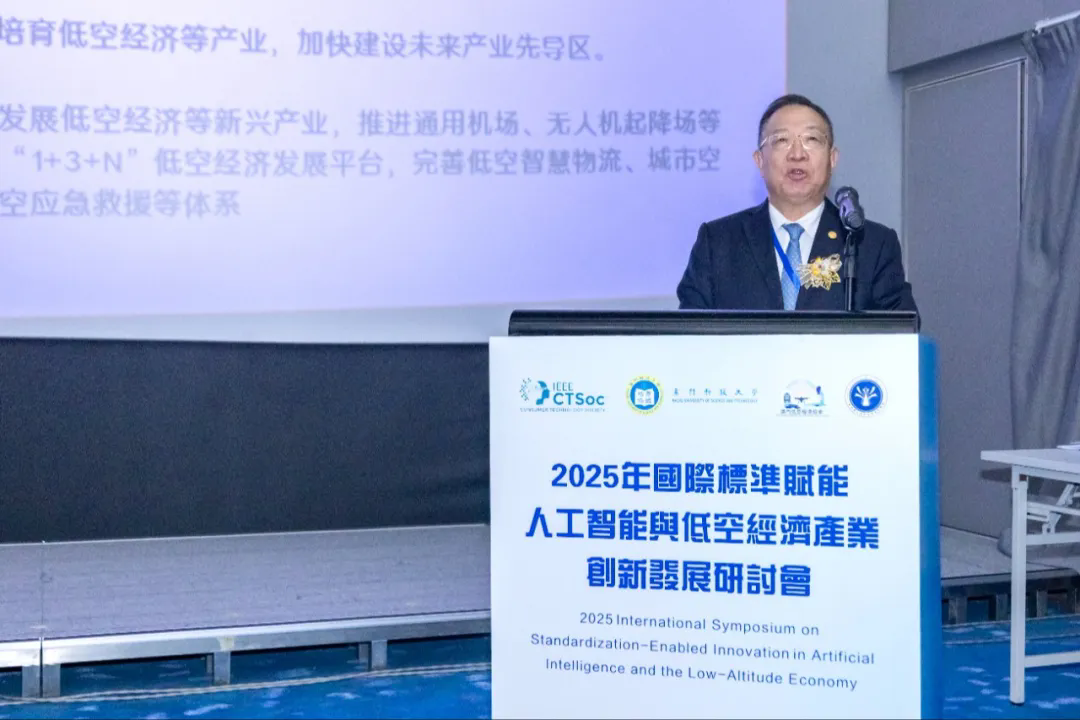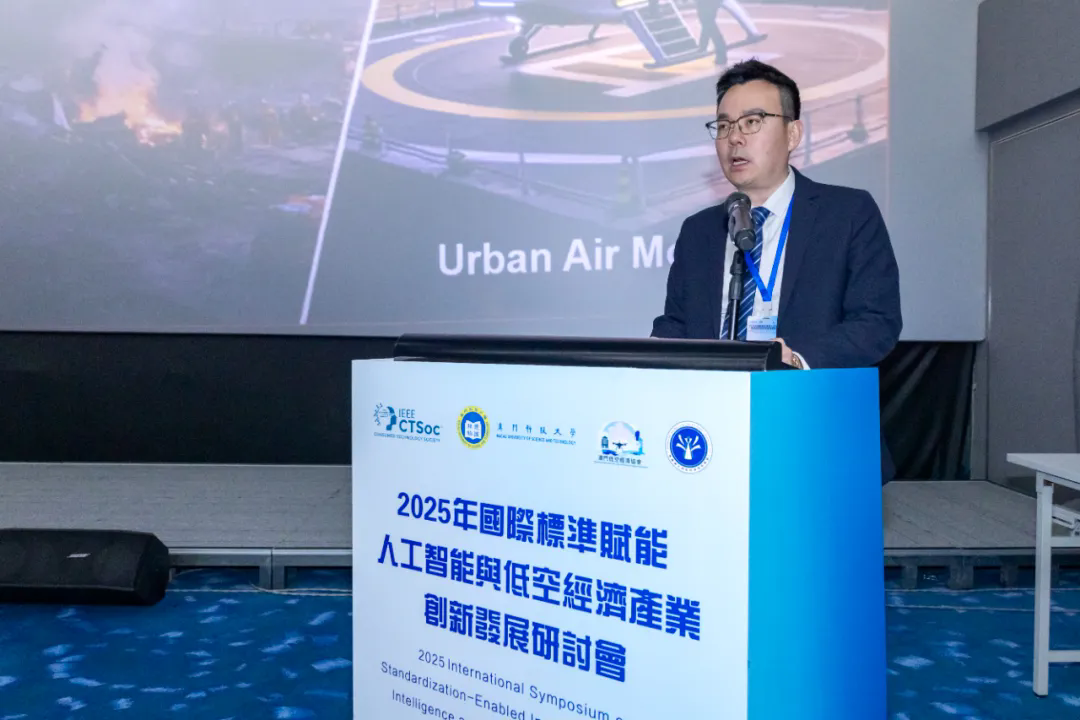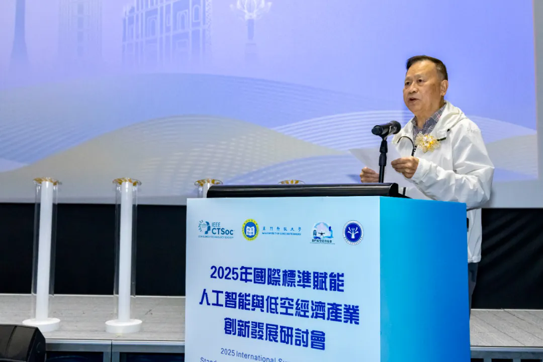 2025年12月18日,由澳门科技大学、粤港澳大湾区标准创新联盟低空经济标准委员会、澳门低空经济协会联合主办,粤港澳大湾区标准创新联盟承办,IEEE消费技术协会标准委员会指导的“国际标准赋能人工智能与低空经济产业创新发展研讨会”在澳门科技大学成功召开。来自低空经济国际标准体系建设成员单位、相关政府部门、高校、企业及科研机构的近百位专家学者出席会议,以低空经济产业创新发展为核心,以国际标准赋能为纽带,驱动低空经济标准化工作迈向机制化、平台化、国际化的新阶段。