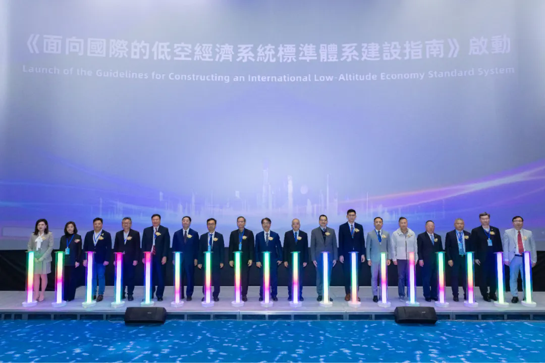 澳门特别行政区行政会委员、澳门管理学院院长唐继宗,IEEE消费技术协会标准委员会主席曾剑锋,澳门科学技术发展基金行政委员会主席余雨生,澳门中联办经济部四级调研员朱道阳,澳门特别行政区政府经济及科技发展局副局长陈祖荣,澳门特别行政区交通事务局副局长李颖康,中国科学院院士、兰州大学大气科学学院黄建平教授,国家精准农业航空施药技术国际联合研究中心主任、华南农业大学人工智能学院兰玉彬教授,粤港澳大湾区标准创新联盟低空经济标准委员会主席、澳门科技大学澳门系统工程研究所所长伍乃骐讲座教授,华南理工大学计算机学院院长、欧洲科学院院士陈俊龙教授,香港生产力促进局新型工业化部总经理单铭贤,澳门生产力暨科技转移中心经理李浩宁,深圳市无人机行业协会会长杨金才,澳门低空经济协会会长金晖,珠海市市场监督管理局(知识产权局)副局长邓未,深圳市标准化协会秘书长但丹,以及澳门科技大学副校监、校长李行伟讲座教授,创新工程学院韩子天教授等嘉宾共同启动该指南,标志着国际低空经济标准体系建设迈入新阶段。
