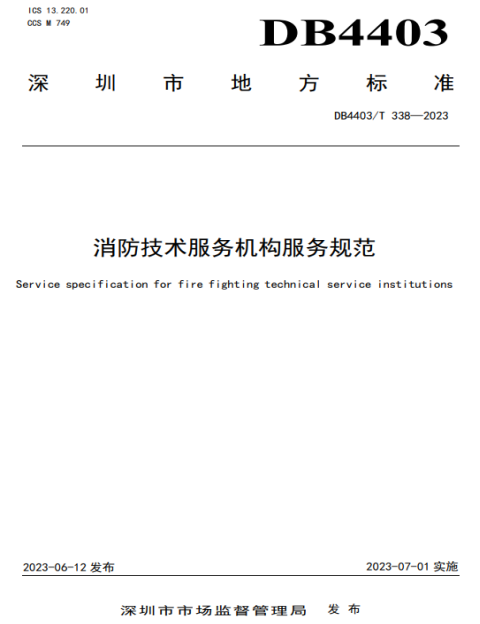 《消防技术服务机构服务规范》规定了消防技术服务机构从事消防技术服务活动的基本要求、服务原则、消防技术服务内容和流程,以及消防技术服务机构能力等级评价等,适用于在深圳市登记或从业的消防技术服务机构服务的管理及评价。该标准的研制是贯彻落实《消防技术服务机构从业条件》《社会消防技术服务管理规定》等文件精神,是深圳市消防技术服务行业高质量发展的迫切需求。